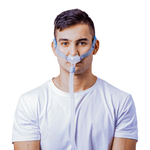 Seu design inovador oferece mínimo contato com o rosto, permitindo que o paciente durma em diversas posições sem comprometer a vedação, aumentando a adesão ao tratamento. Para garantir um encaixe personalizado, acompanha três tamanhos de almofadas nasais (P, M e G), facilitando o ajuste sem necessidade de estoques variados. Além disso, seu campo de visão livre permite que os pacientes leiam, assistam TV ou utilizem dispositivos eletrônicos antes de dormir, tornando o uso da máscara mais confortável e natural. Outro diferencial é sua válvula exalatória, que direciona o fluxo de ar para baixo, reduzindo o ruído e proporcionando maior conforto tanto para o paciente quanto para seu parceiro(a) de sono.